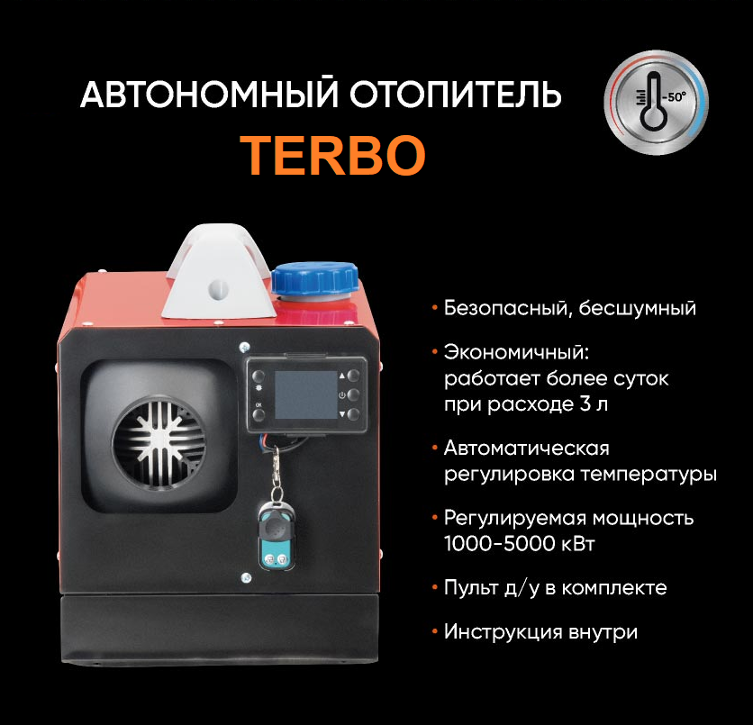 ❗В автономном воздушном обогевателе Terbo 5 кВт используется тот же аналогичный принцип работы, который применяется в оборудовании Webastо (Вебасто), Eberspacher (Эбеpшпeхер), Планар, Лунфей, Sumitachi, но не требует сложных подготовительные и монтажных работ.