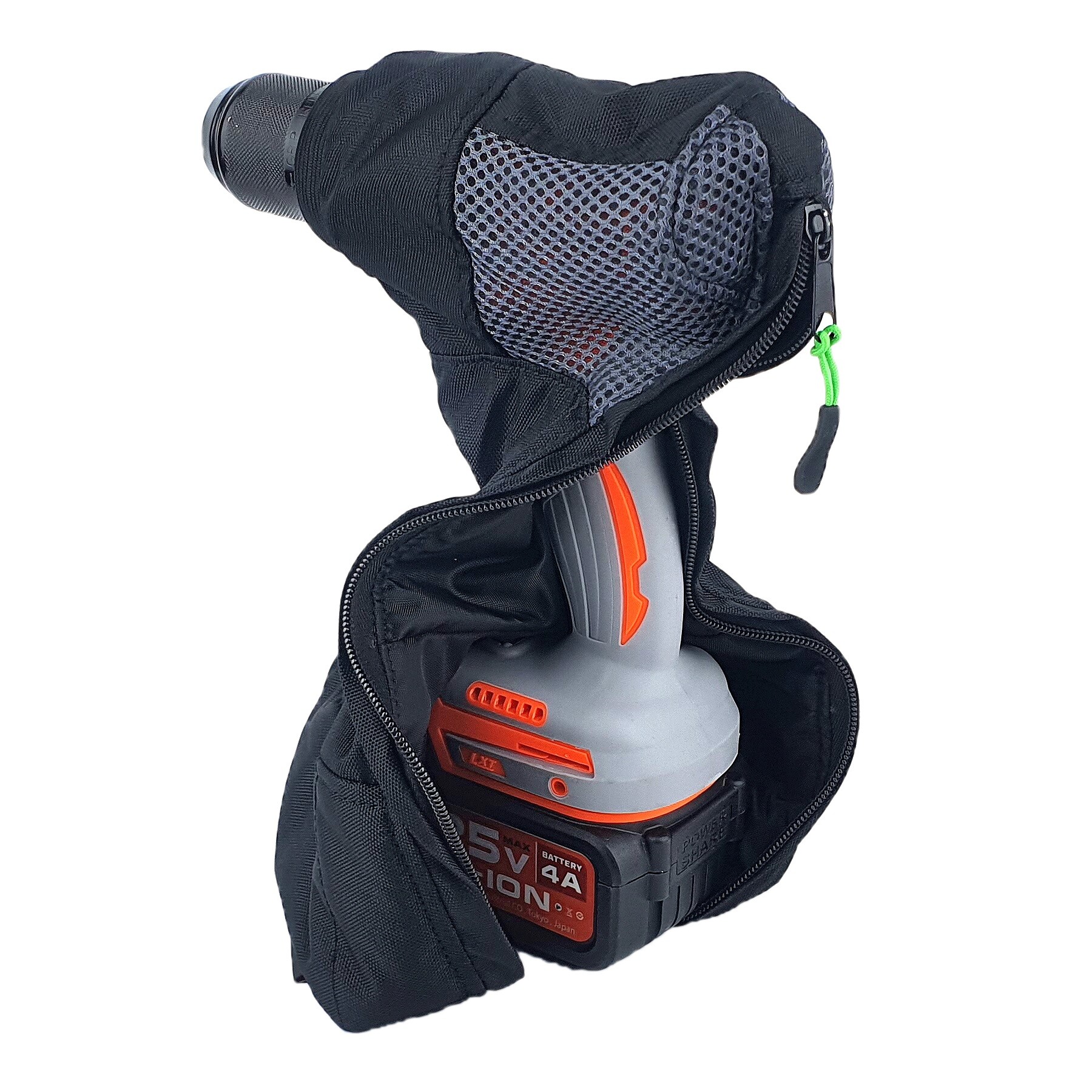 Чехол предназначен для защиты шуруповерта от влаги, пыли, механических воздействии. И самое главное увеличивает срок работы аккумуляторной батареи зимой при эксплуатации на низких температурах.